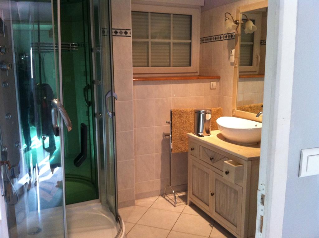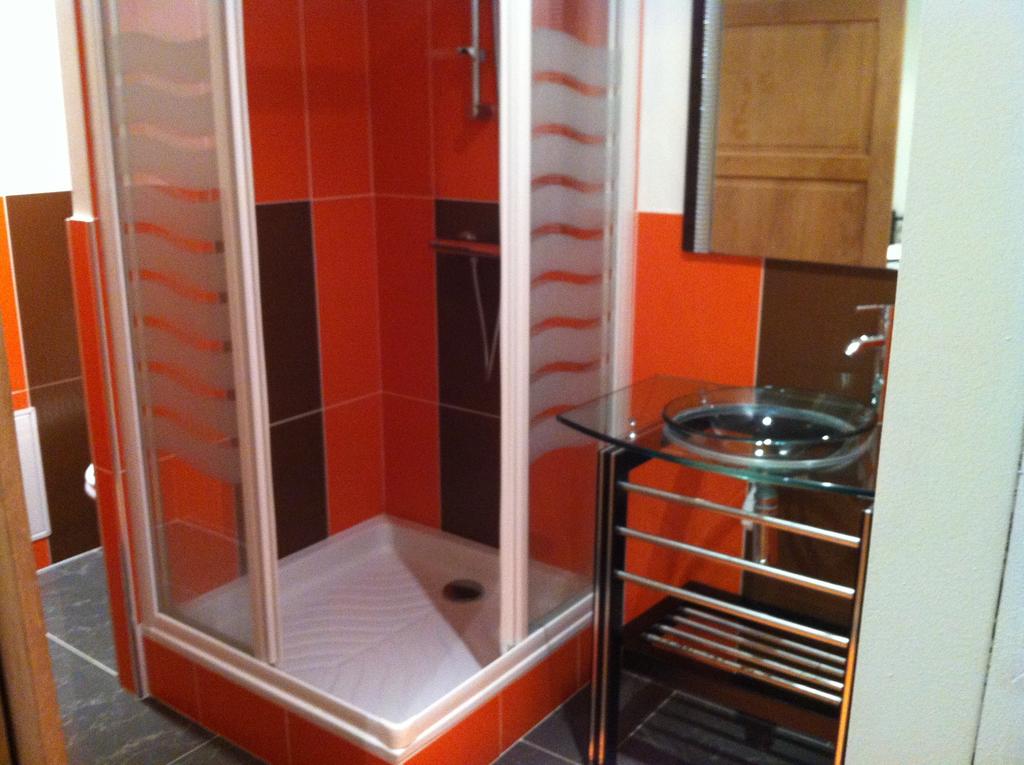 Notre gite dispose de 4 salles de bains, dont une pourvue d'une douche multi-jets et d'un sèche-serviettes.