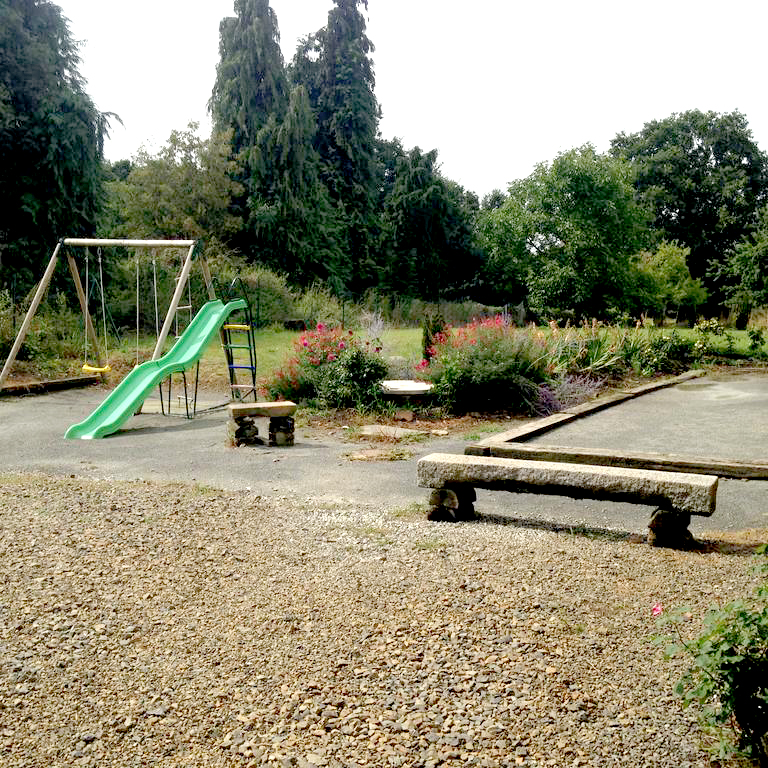 L'espace dehors est considérable, avec son coin pelouse, le coin des enfants (balançoire et toboggan), le coin pétanque (boulodrome), le barbecue et sa terrasse.